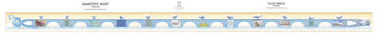 The Velvet Bridge is a monumental mural by world-renowned Czech-American artist, Peter Sís, composed of more than 6,600 hand-painted ceramic tiles. Soon to be installed on a wall in Prague’s Kampa Park in spring 2026, the mural tells the story of Czechoslovakia’s struggles and triumphs from its founding in 1918 to the Velvet Revolution of 1989 led by Václav Havel.
